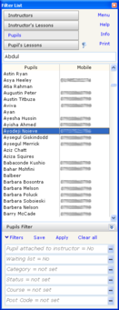 Click and hold a pupil from the Filter List then drag onto the diary and drop. A lesson with default values for the pupil will be inserted. To book a 2 hour lesson, hold Ctrl key before dropping You can move lessons around just by dragging them to the desired time slot. Learn how ADI-diary.NET selects pupils for a computer operation